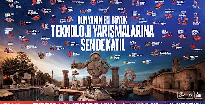 30 Eylül-4 Ekim 2026 tarihleri arasında GAP Havalimanı'nda düzenlenecek olan TEKNOFEST, her yıl yenilenen yarışma kategorileriyle birlikte Türkiye'nin en büyük ödüllü teknoloji yarışmalarına ev sahipliği yapmaya devam edecektir. TEKNOFEST 2026 teknoloji yarışmaları için son başvuru tarihi 20.02.2026'dır.